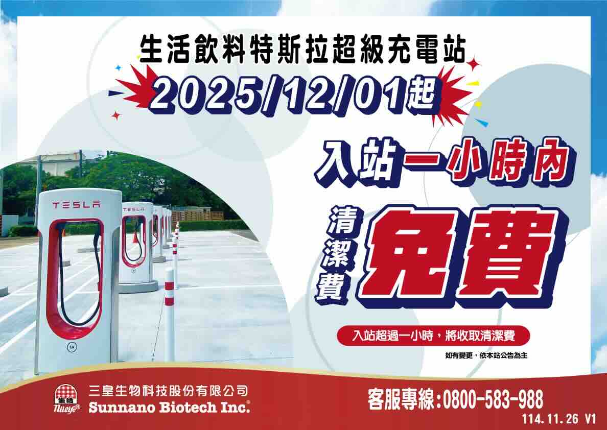 生活特斯拉超級充電站 入站 一小時內免清潔費