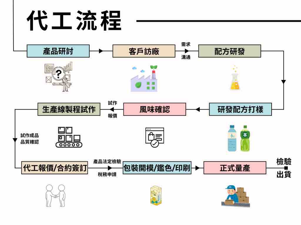開發歷程:全產品OEM生產,依客戶訴求進行配方調配;產品開發可依客戶需求;以無菌充填技術,使產品在常溫無菌的狀態下生產,保持飲料的色、香、味和營養成份,安全健康又衛生。