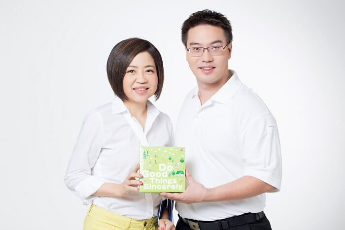 Caption: Chairman of Sunnano Biotech, Ting Kun Wang,  and Belle Yu, the host of this charity, took photo for publicity shots